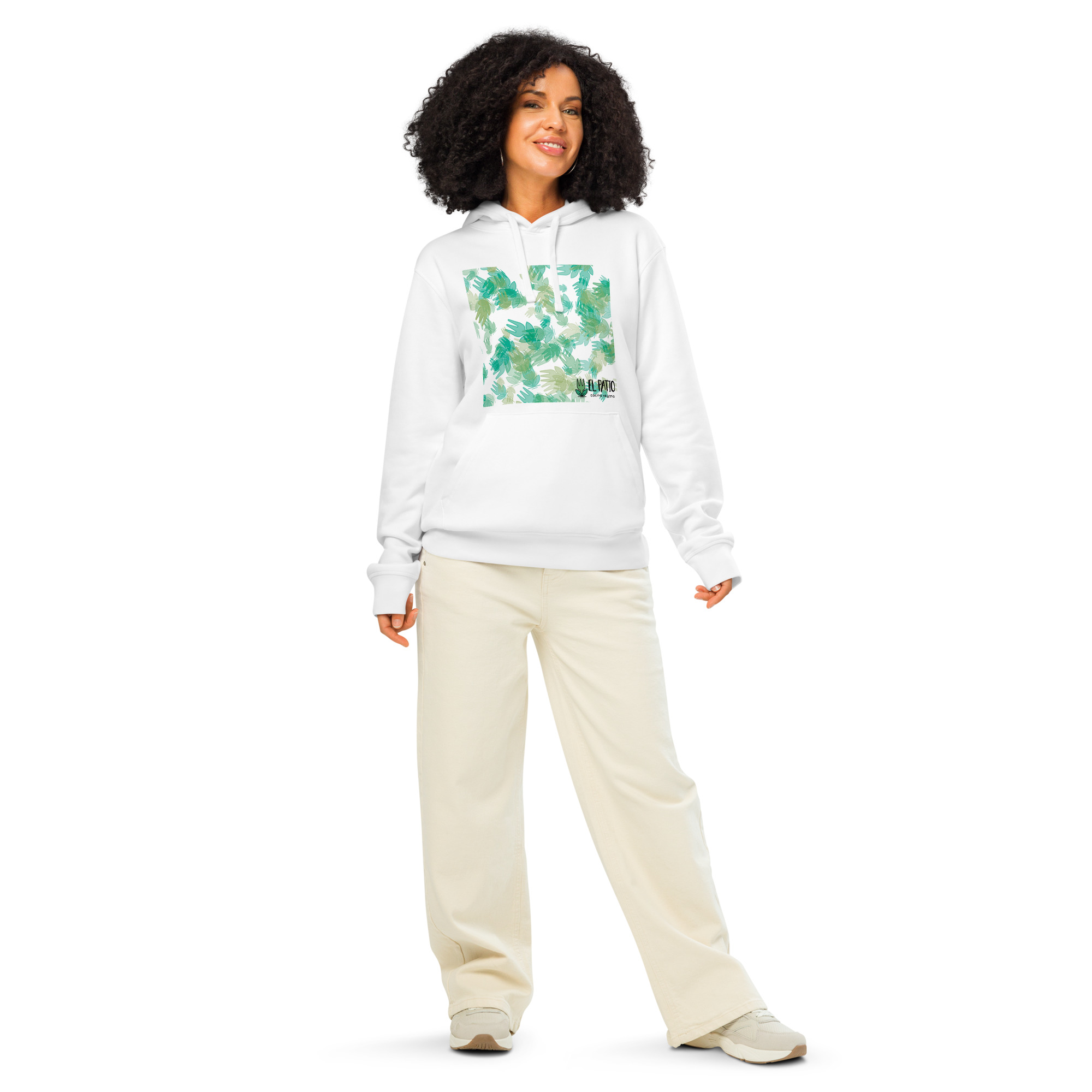 Siéntete cómodo con esta sudadera con capucha de peso medio. Confeccionada con una suave mezcla de algodón orgánico y poliéster reciclado, es ideal para combinar con capas en días fríos. El elegante detalle de media luna en la parte posterior le da un toque sutil de estilo y la convierte en la opción ideal para cualquier conjunto informal.